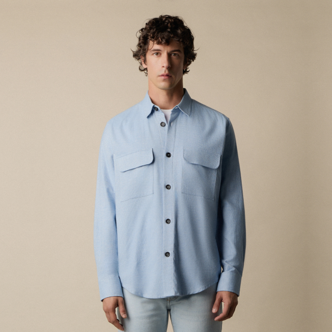Cotton Flannel Overshirt with Flap Pockets