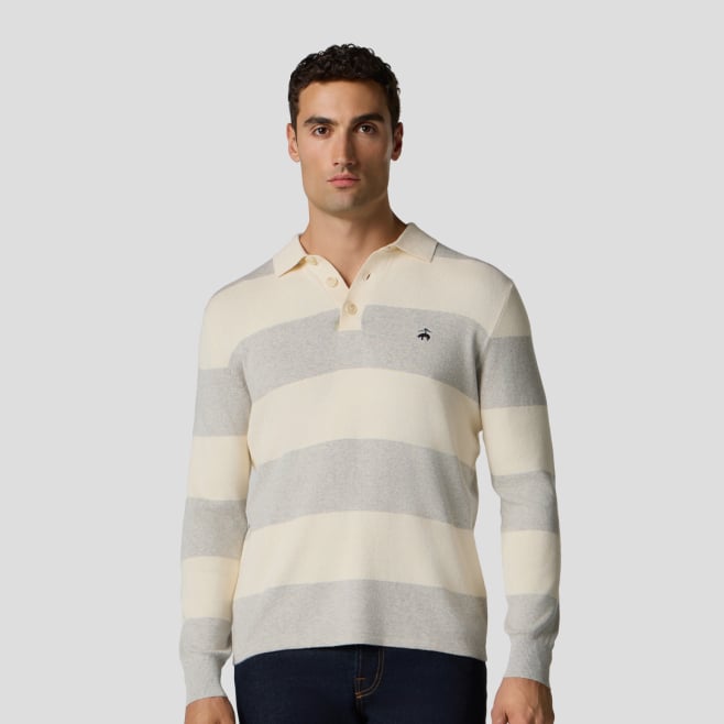 Match one of our fine knit shirts with pair of chino trousers. Our men’s polos are machine washable for easy care. Whether you’re drawn to our neutral-toned solid-hued designs or our printed and striped polo shirt’s styles, you can be assured of exceptional quality and fit from Brooks Brothers. And embroidered signature fleece logo at left chest adds to our polo shirts a classy touch.