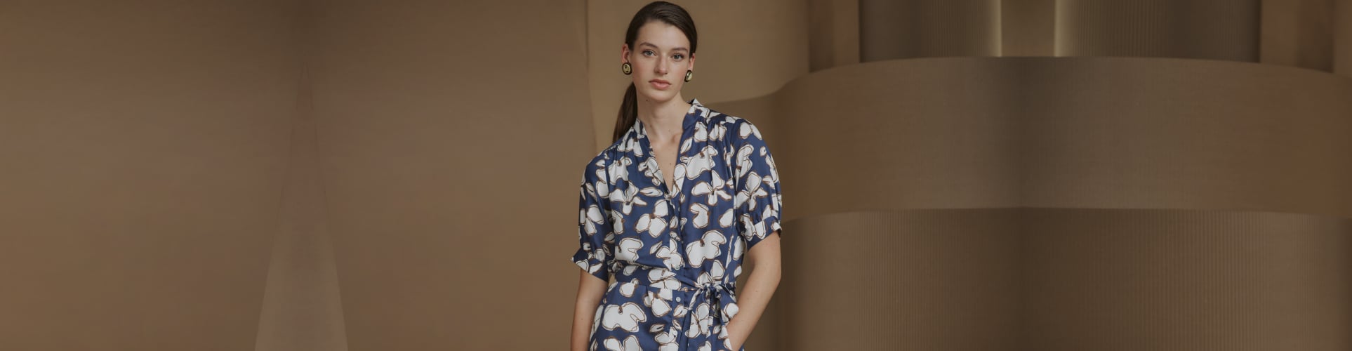 Brooks Brothers Paisley V-Neck Midi Dress Blue 1000104893US100222360