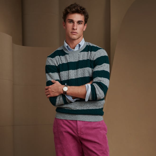Sweter z Okrągłym Dekoltem z Mieszanki Wełny Donegal